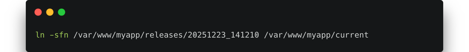 - Nunca ejecutes la app desde un directorio mutable. Usa releases con un symlink current (cambio atómico).