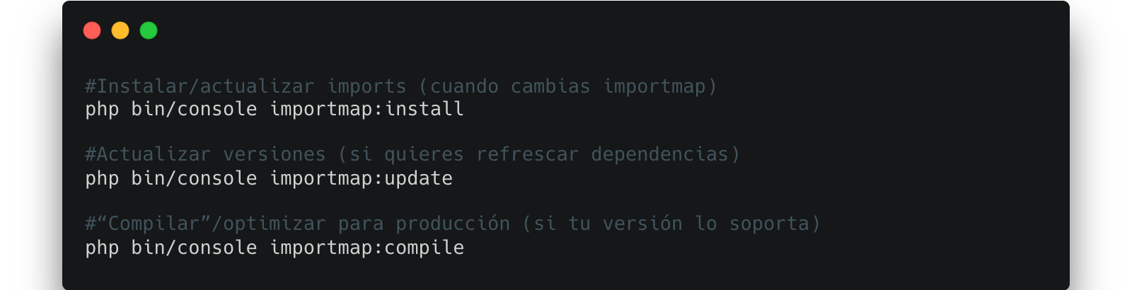 - AssetMapper / Importmap: más simple, pero revisa headers y caché.