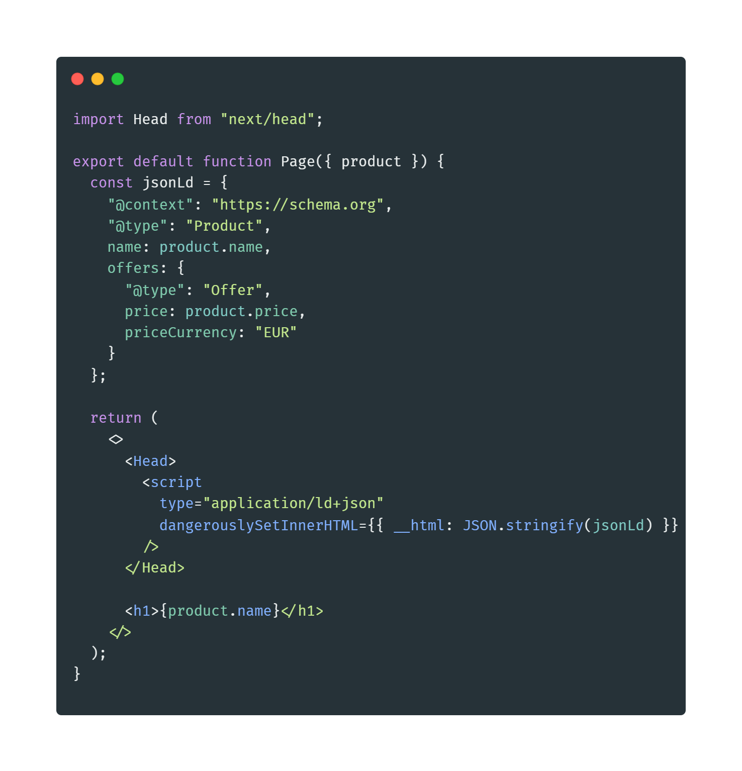 En Next.js, integrarlo correctamente es tan simple como generar el schema con los mismos datos que ya usas para construir la UI. Sin librerías, sin complejidad añadida.