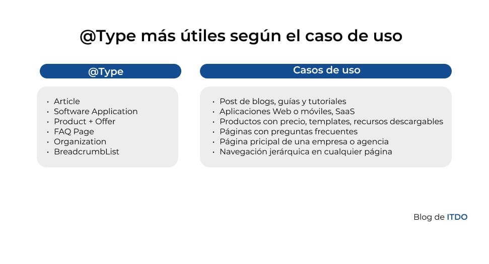 - @type: indica el tipo de entidad (Product, Article, FAQ, etc)