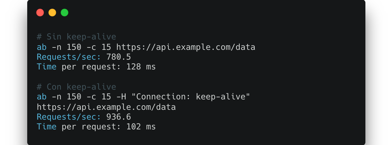 Connection: keep-alive no es nuevo, pero sigue siendo una de las optimizaciones más simples y efectivas que puedes aplicar en cualquier API HTTP/1.1.